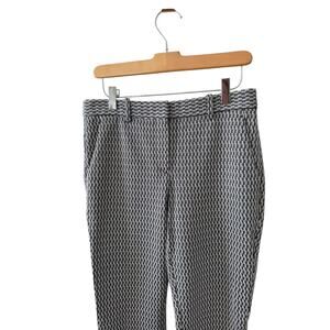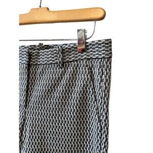 Theory Treeca black check knit work pants, size 4. Very good preowned condition, cotton, polymide viscose elastine blend. Zipper & tab closure, ankle length.