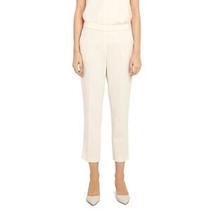 Theory Treeca Pants Crepe Pull On Mid Rise Straight Leg Ankle Trousers Rice 12
