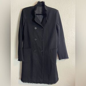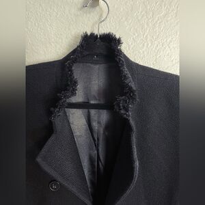 Beautiful and classic, a jacket that’ll never go out of style. The jacket has a tweed texture with a raw hem detail at the cuff, collar, and hem. Lined and in great condition. Ptp 22”, length 38”. Questions? Leave a comment below!