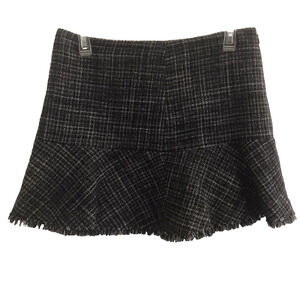 Theory Tweed Mini Skirt Raw Hem Low Rise Blue Black Wool Lined Women's Size 4