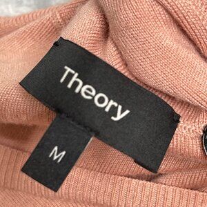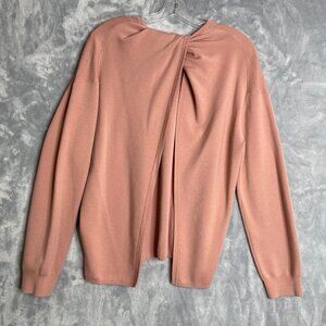 Theory Twist Back Sweater Womens M Dark Gardenia Pink Merino Wool Preppy