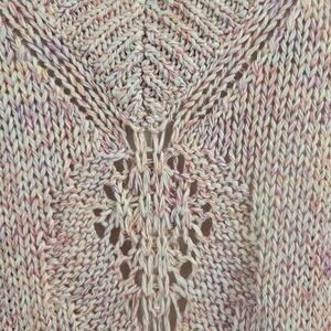 Theory open knit V-neck cotton/silk blend "UDA Rainbow Tape" Sweater in a marled light pink/cream. Very good preowned condition, Size: Medium