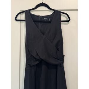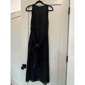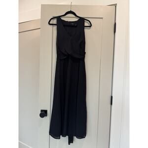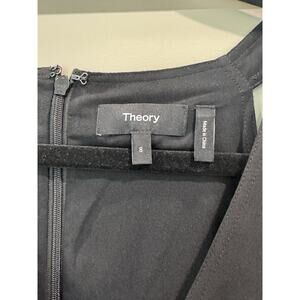 Theory V Neck Tie Silk Black Dress LBD Womens 8 Midi Slip A Line Faux Wrap