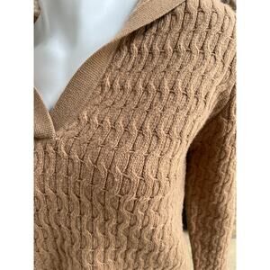 Theory V-Neck Dimensional Polo Wool Cashmere Brown Sweater Women's Size Small. Measurements: bust: 20, length: 22