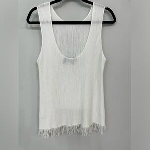Theory Vendla O White Scoop Back Fringe Linen blend Sleeveless Top Size M 10