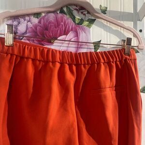 Bright orange trousers with a sleek design. Perfect for adding a pop of color to any outfit.