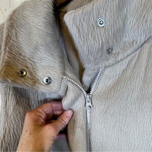 Theory Visterna Faux Fur Virgin Wool Plush Vest Snap/Zip Jacket Womens Size M