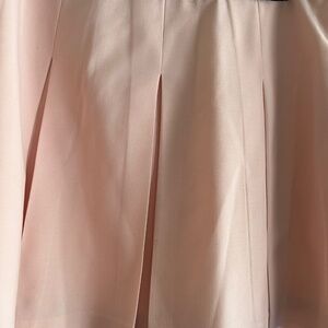 Theory wool pleated Vivian skirt pale pink with lining and black grosgrain ribbon attached with flat bow to skirt. Box pleat skirt approx 15 inches in length. Black grosgrain ribbon as belt with flat bow. Size tag came off but fits like size 4. Hidden Side Zipper. Hook & Eye Closure. 3.6” Pleats all the way around. Mini skirt, preppy, y2k, Eloise at the plaza