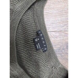 Theory Waffle Knit Top Cotton Cashmere Green Long Sleeve Crew Neck Size P (XS)