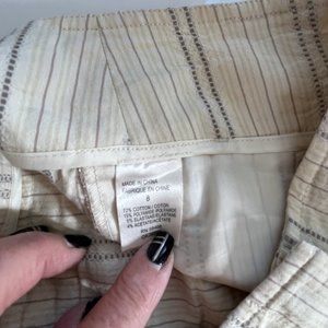 Great worn with a simple tee. Side pockets, fat front, belt loops and unique and fabulous material.