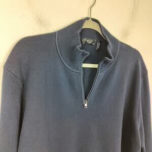 Theory Walton 1/4 Zip Sweater Mens XL Navy Blue Cotton Stretch Preppy Designer