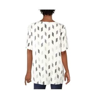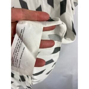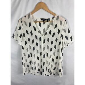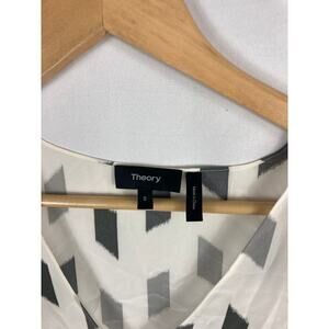 Theory White A-Line Brush Printed V- Neck Silk Blouse Size Small
