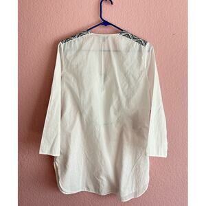 Theory White Black Cotton Lawn Jalinnie Popover Tunic V Neck Top Size Medium