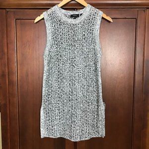 Theory White Black Linen Blend Knit Sleeveless Sweater Top Size Small