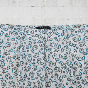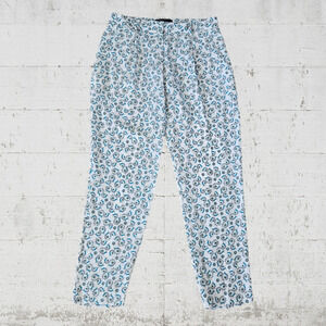 Theory White Blue Floral Silk Boho Mid Rise Tapered Womens Trousers Size 0