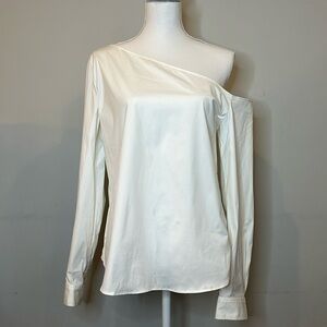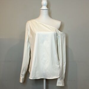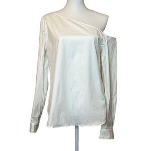 Theory White Crisp Ulrika One-Shoulder Asymmetric Shoulders Blouse Size Medium