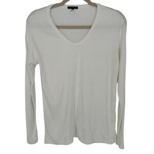 Theory White Long Sleeve V-Neck T-Shirt Casual Workwear Transitional P (S)