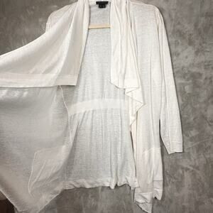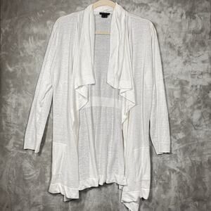 Theory White Open Front Knit Cardigan Lightweight Draped Cardigan Size Large