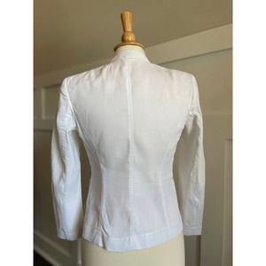 This lightweight, white blazer is the perfect compliment to any professional wardrobe to wear in warmer climates or during the Summer months. It's a versatile staple piece that rounds out any closet.