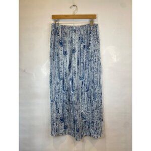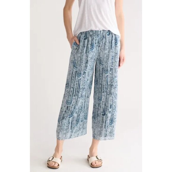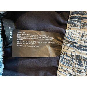 Theory Wide Leg Crop Pant Women's Medium 100% Silk Teal Multi Cascade Lined New