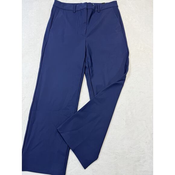 Theory Wide Leg Trousers Navy Blue Flat Front High Waist Modern Prep Women's 10
