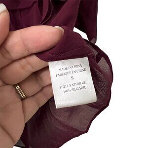 Theory Wine Burgundy Rinoda Chiffon Silk Ruffle 3/4 Sleeve Blouse Top Size Small