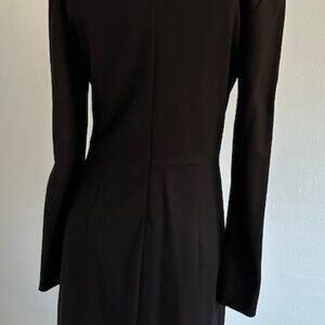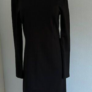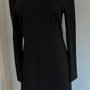 Theory Winstine SS Mireena Ponte classic black dress, size 10. Long sleeves, crew neck, 6.5" front slit, back zip closure, knee length.