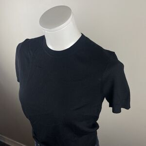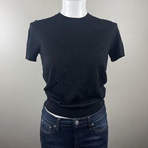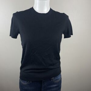 Theory Women Petite Black Regal Short Sleeve Wool Sweater Soft Classic Luxury