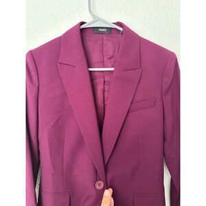 Theory Women Purple Angled Single Button Wool Blazer Coat Size 2 NWT