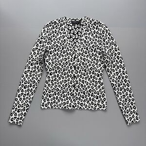 Theory Women Small Jacquard Leopard Print V-Neck Cardigan Black White Stretchy