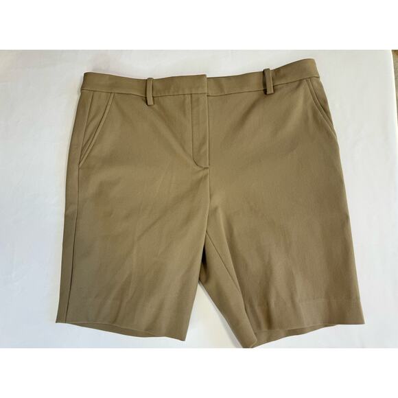 Theory brand women's Treeca shorts in size 6, tan bistretch Bermuda style.