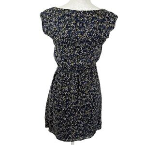 Theory Women's 4 Arena Abstract Dress Blue Yellow Black Multi 100% Silk Chiffon Sleeveless EUC
