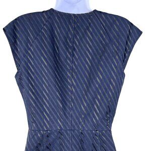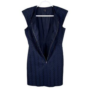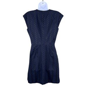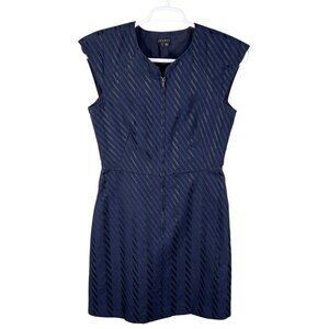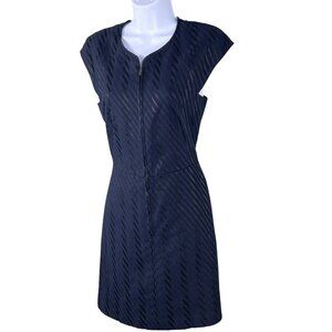 Theory Womens 8 Navy Asymmetrical Striped Textured Zip Front Sheath Dress Cap Sleeve Holiday Business Church Career Wear