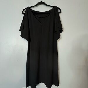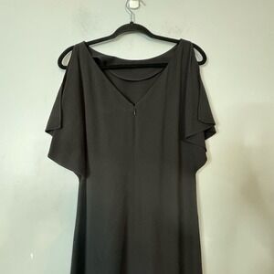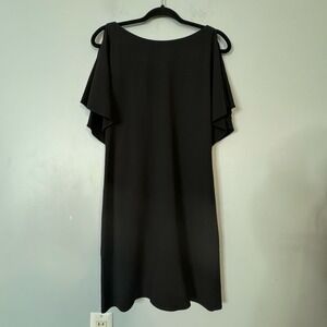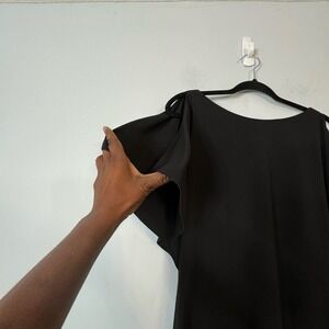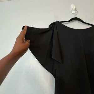 Theory Women's Andzelika Rosina Crepe Mini Shift Dress Split Sleeve Black Size 0