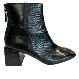 Theory Women's Black Croc Embossed Ankle Booties Size 9 Block Heel
