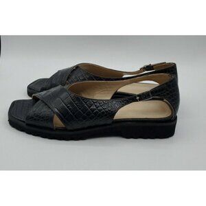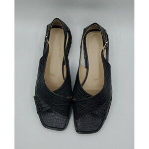 Theory Women's Black Cross Lug Sandal in Croc Print Goat Leather Size 38 US 8