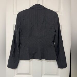 EUC Wool blend blazer by Professional wear experts Theory. Jacket features a single snap close with buily in waist tie to help accentuate your waist. Fully lined. Faux front pockets. Light pinstripe design. Fitted cropped length. Perfect for pairing with a high waisted pant and keeping you silhouette in 1/3rds.