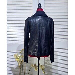 Theory Women's Black Lamb Leather Double-Breasted Moto Jacket Size M 2752