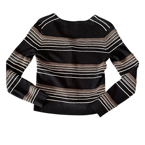 Theory Women's Black Striped V-Neck Cardigan Sweater Size Small Front Button