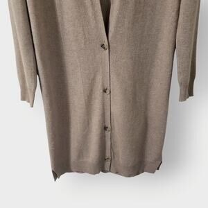 Theory Womens Cashmere Longlined Button Front Cardigan Oatmeal Sz Small *FLAW*