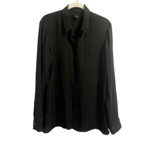 Theory Women's Classic Button Down 100% Silk Long Sleeve Shirt in Black sz. M