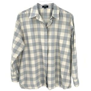 Theory Women's Classic Menswear Cotton Silk Shirt Blue Stream Button Down Top