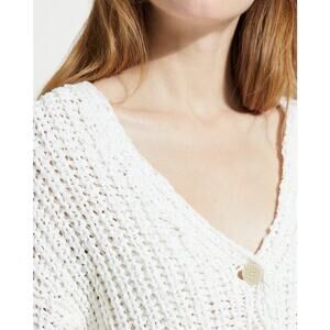 Theory Women's Cotton Blend Ribbed Cardigan Sweater White Size M