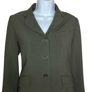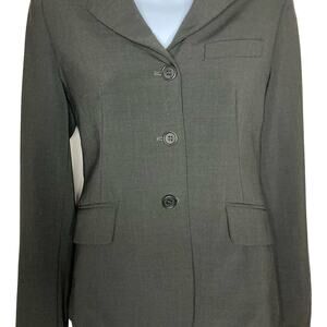 Theory Women's Dark Brown Wool Blend Blazer Jacket Button Front V-Neck