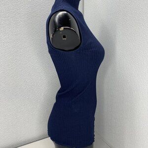 Theory Women’s Funnel Neck Ribbed Sleeveless Tank Top – Navy Blue – Size SP