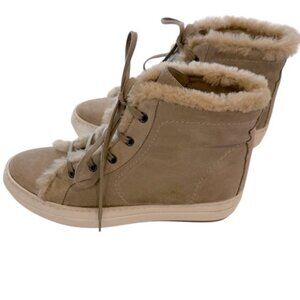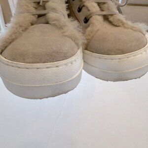 Theory Women’s High Top Suede Sneaker Size 38 EU 8 US Tan Fur Accent Lace Up