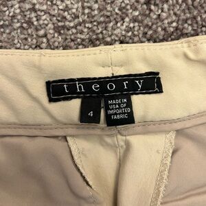 Theory Womens Izelle Chino Pants Size 4 Beige 30" inseam Stretch Made in USA EUC
