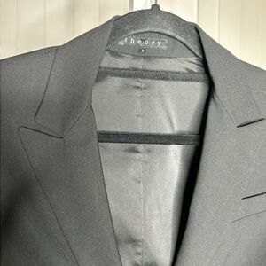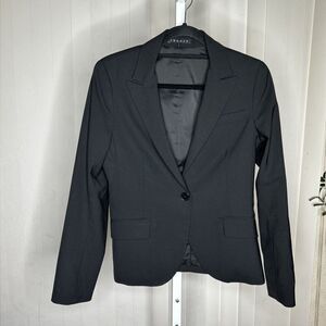 Theory Womens Jacket Black Blazer Wool Blend Stretch Lined Shoulder Pads Size 8