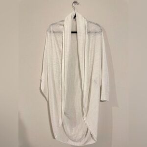 Theory White Linen Blend Cocoon Longline Open Front Cardigan Sweater