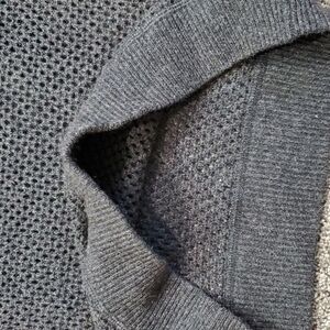 Beautiful theory crew neck silk/cashmere sweater in dark grey. See through pattern design. With ribbed collar cuffs and waistband. Lightweight knit fabric in good condition.
